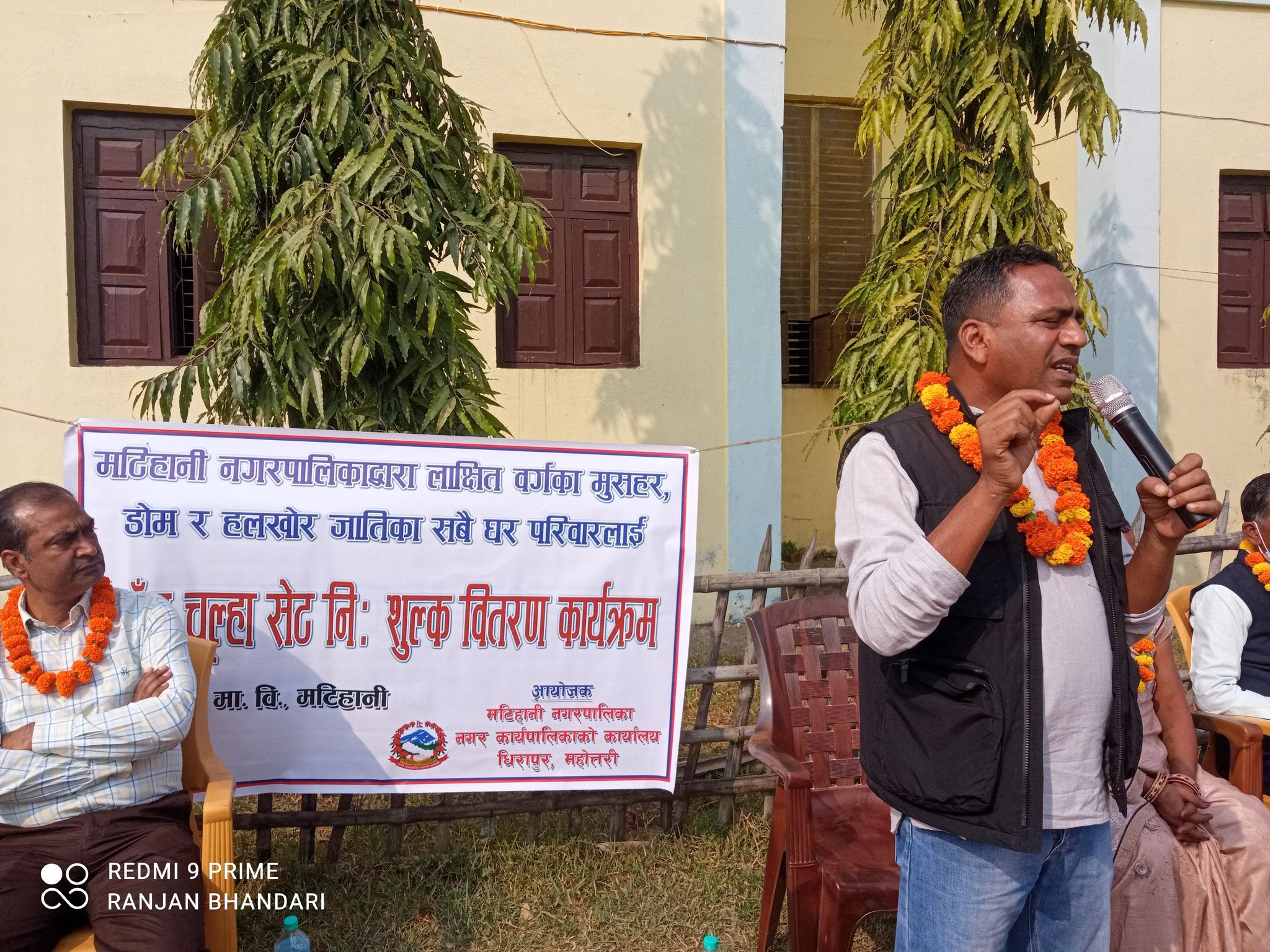 रञ्जन भण्डारी महोत्तरी,११ मंसिर महोत्तरीको मटिहानी नगरपालिकामा १३३ दलित परिवारलाई ग्यास चुल्हो र सिलिण्डर वितरण गरिएको छ । ..