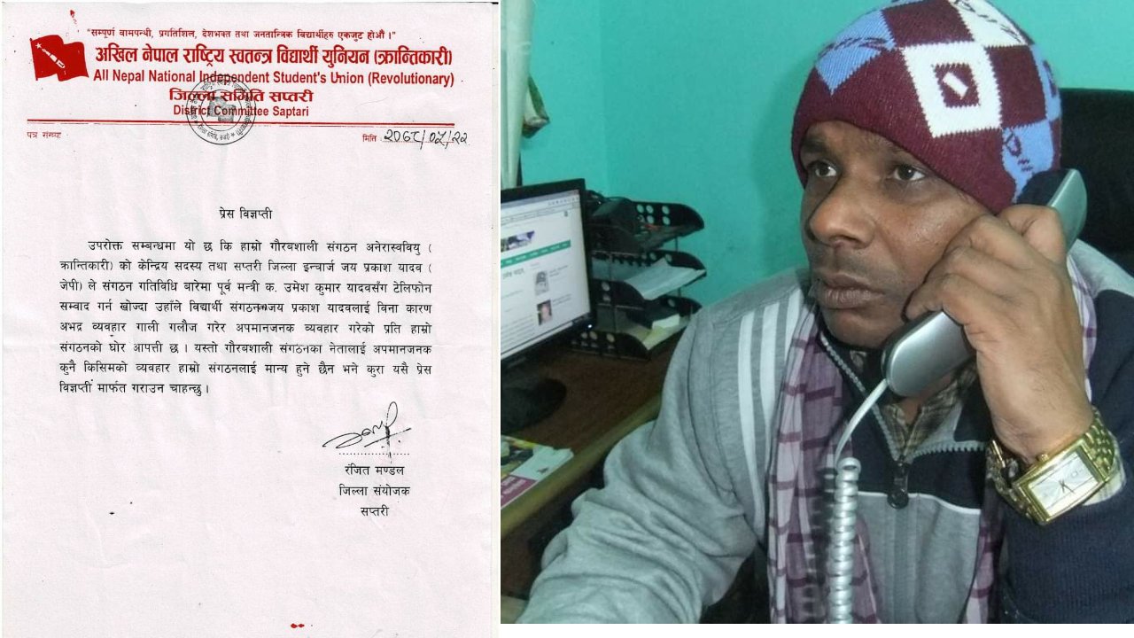 आफ्नै पार्टीको विद्यार्थी नेतालाई गालिगलौज गर्दै पुर्व..