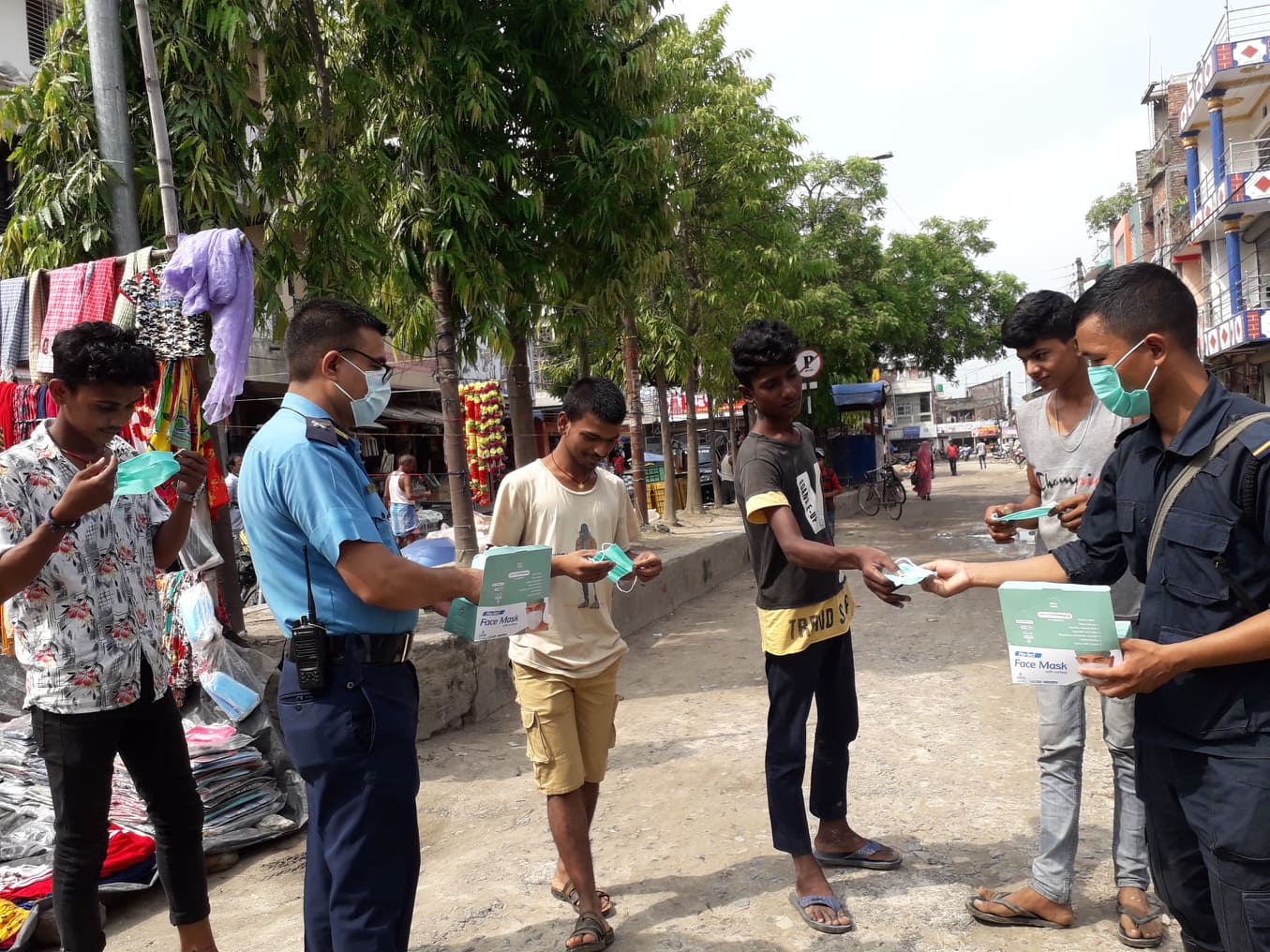 असार ९ ,गौशाला ममता शर्मा महोत्तरीको गौशाला बजारमा आज प्रहरीले मास्क वितरण गरेका छन् । कोभिड -१९ महामारीको जोखिम अझै कायम नै र..