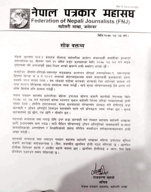 पत्रकार महासंघ द्वारा अर्जुन कुशवाहाको निधनप्रति दुख व..