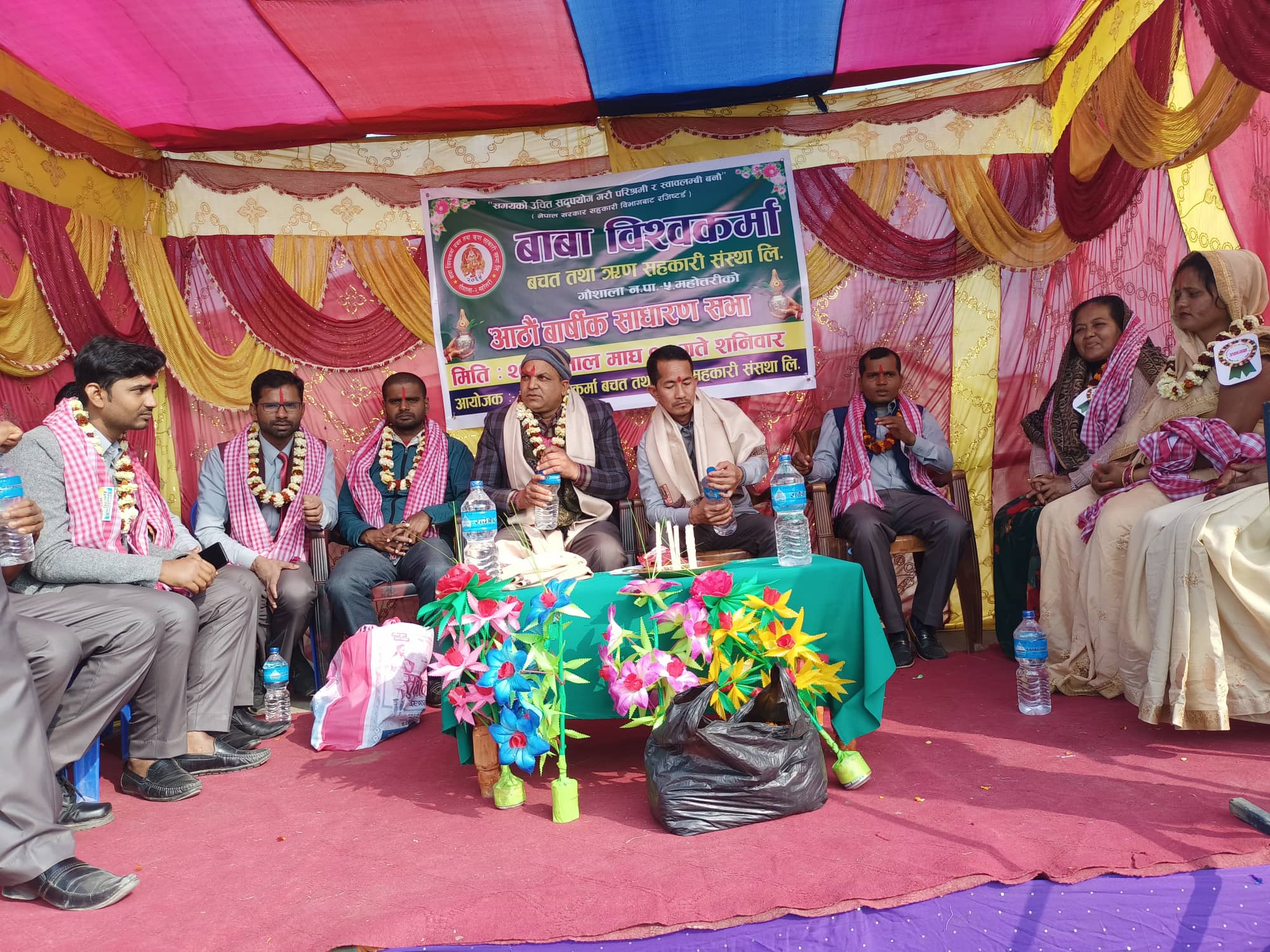 माघ १० ,गौशाला आज गौशाला न.पा. – ५ स्थित गौशाला बजारमा रहेको बाबा विश्वकर्मा बचत तथा ऋण सहकारी संस्थाको आठौ वार्षिक साधारण सफलता..