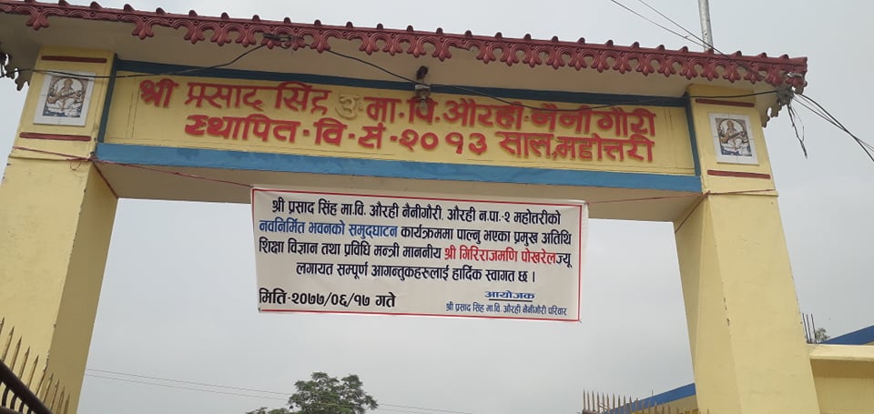 असोज १७ ,औरही महोttरी आज श्री प्रसाद सिंह मा. वि. औरही नैनी गौरी, औरही नगरपालिका २, महोत्तरीको नवनिर्मित भवनको समुद्घाटन कार्यक्रम स..